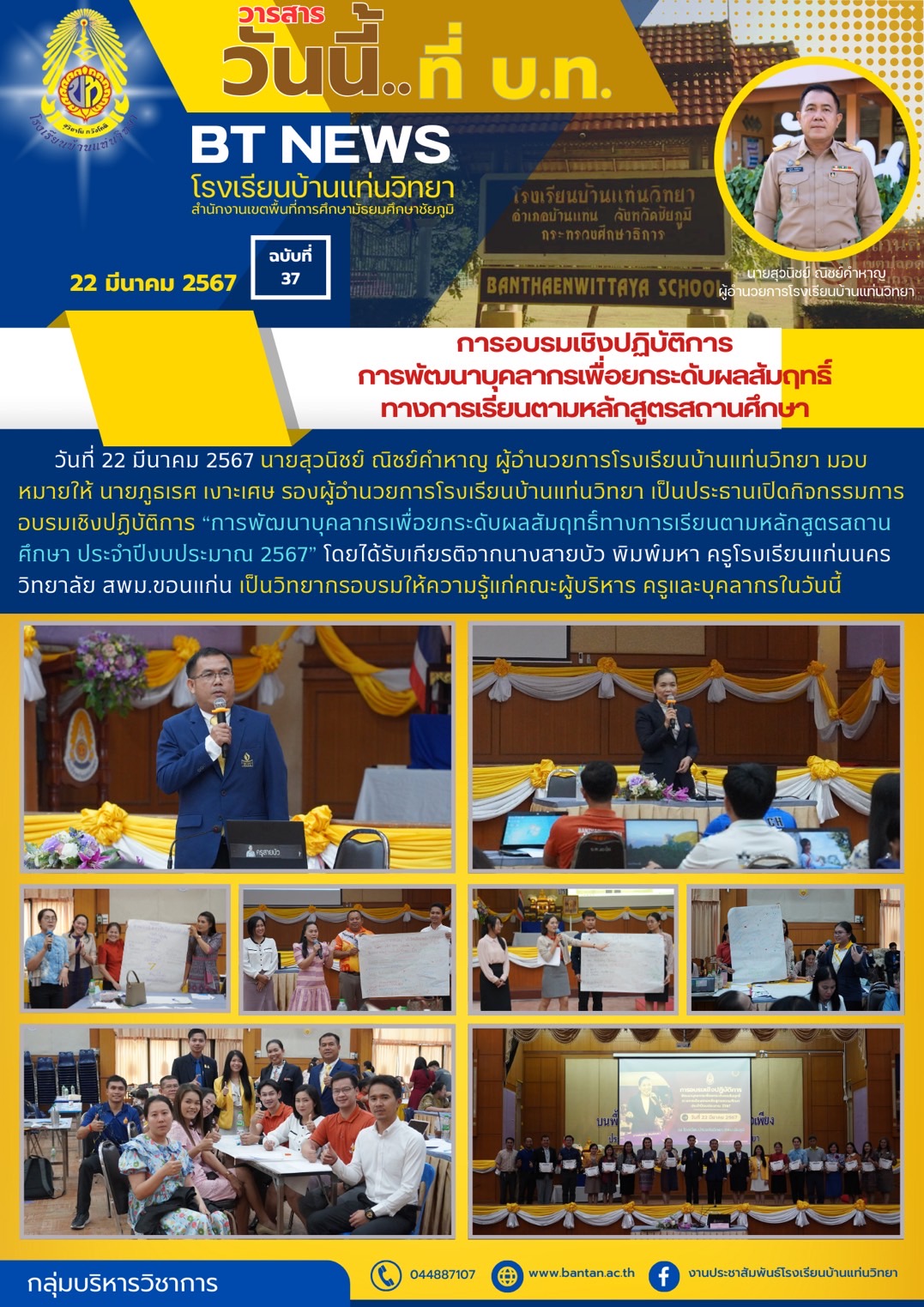 กำหนดการอบรมเชิงปฏิบัติการ การพัฒนาบุคลากรเพื่อยกระดับผลสัมฤทธิ์ทางการเรียน