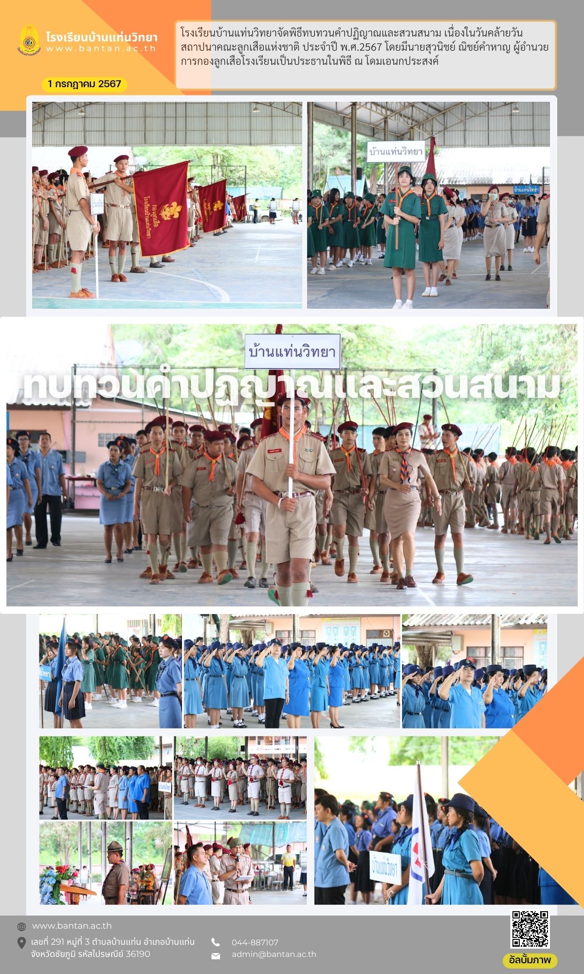 พิธีทบทวนคำปฏิญาณและสวนสนาม เนื่องในวันคล้ายวันสถาปนาคณะลูกเสือแห่งชาติ ประจำปี พ.ศ.2567