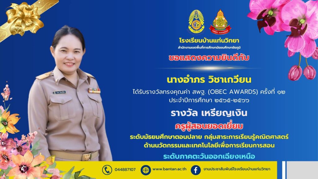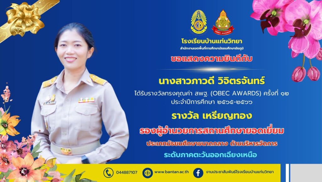 รางวัลทรงคุณค่า สพฐ.(OBEC AWARD) ครั้งที่ 12 ประจำปีการศึกษา 2565-2566 กลุ่มบริหารงาน, คนดีศรี บ.ท., บุคคล / Mr.Ongart Bumrungsuk รางวัลทรงคุณค่า สพฐ.(OBEC AWARD) ครั้งที่ 12 ประจำปีการศึกษา 2565-2566 Read More »
