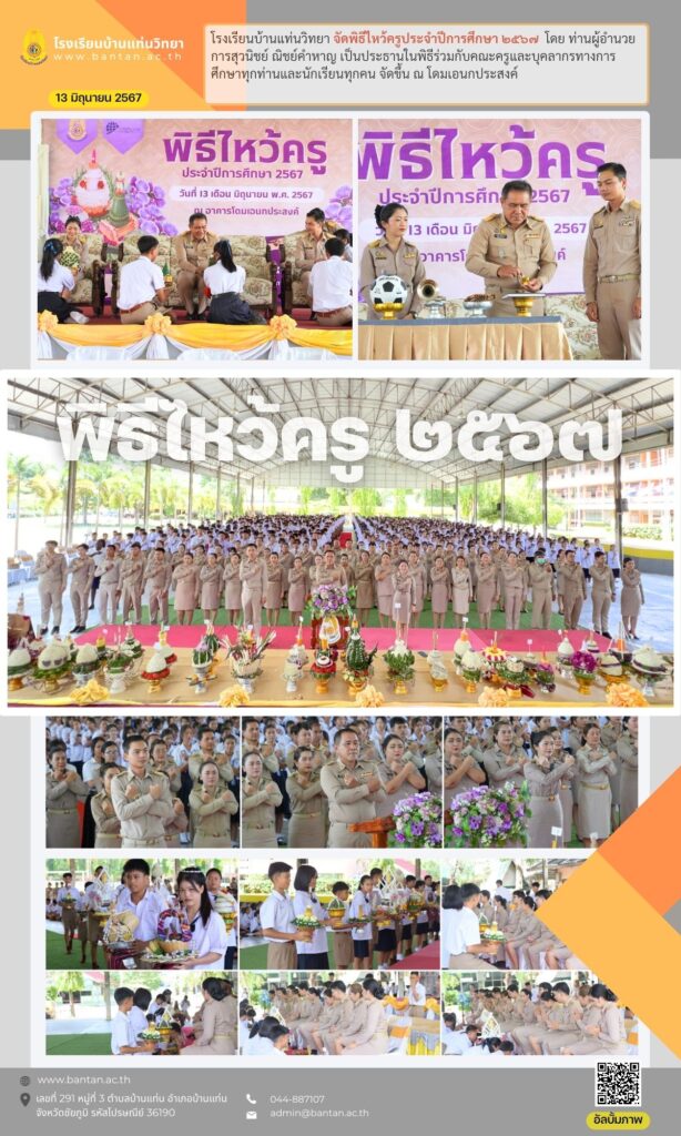 พิธีไหว้ครู ประจำปีการศึกษา ๒๕๖๗ slide banner, การเปิดโอกาสให้เกิดการมีส่วนร่วม, กิจการนักเรียน, คลังภาพกิจกรรม, ประชาสัมพันธ์ / Mr.Ongart Bumrungsuk พิธีไหว้ครู ประจำปีการศึกษา ๒๕๖๗ Read More »
